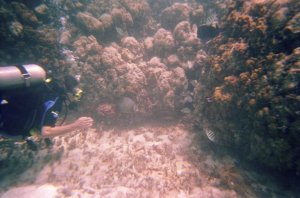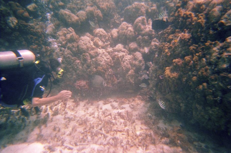 Diver checking out an Angelfish and some Sergeant Majors