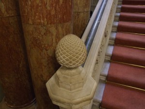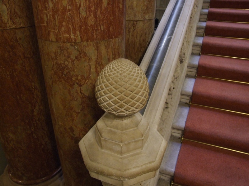 Pineapple fineal on the staircase