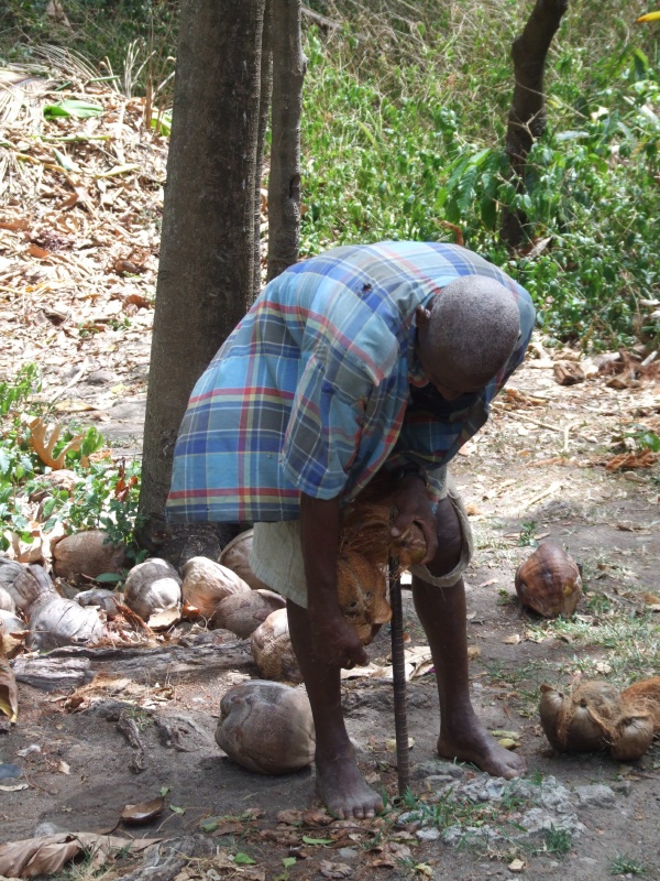 Shelling coconuts