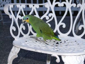 We are joined by the hotel’s parrot, Pirate II