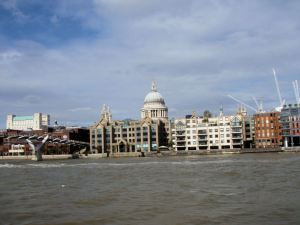 View from river bus, arriving at Bankside