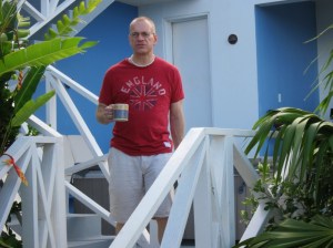 John with his morning coffee