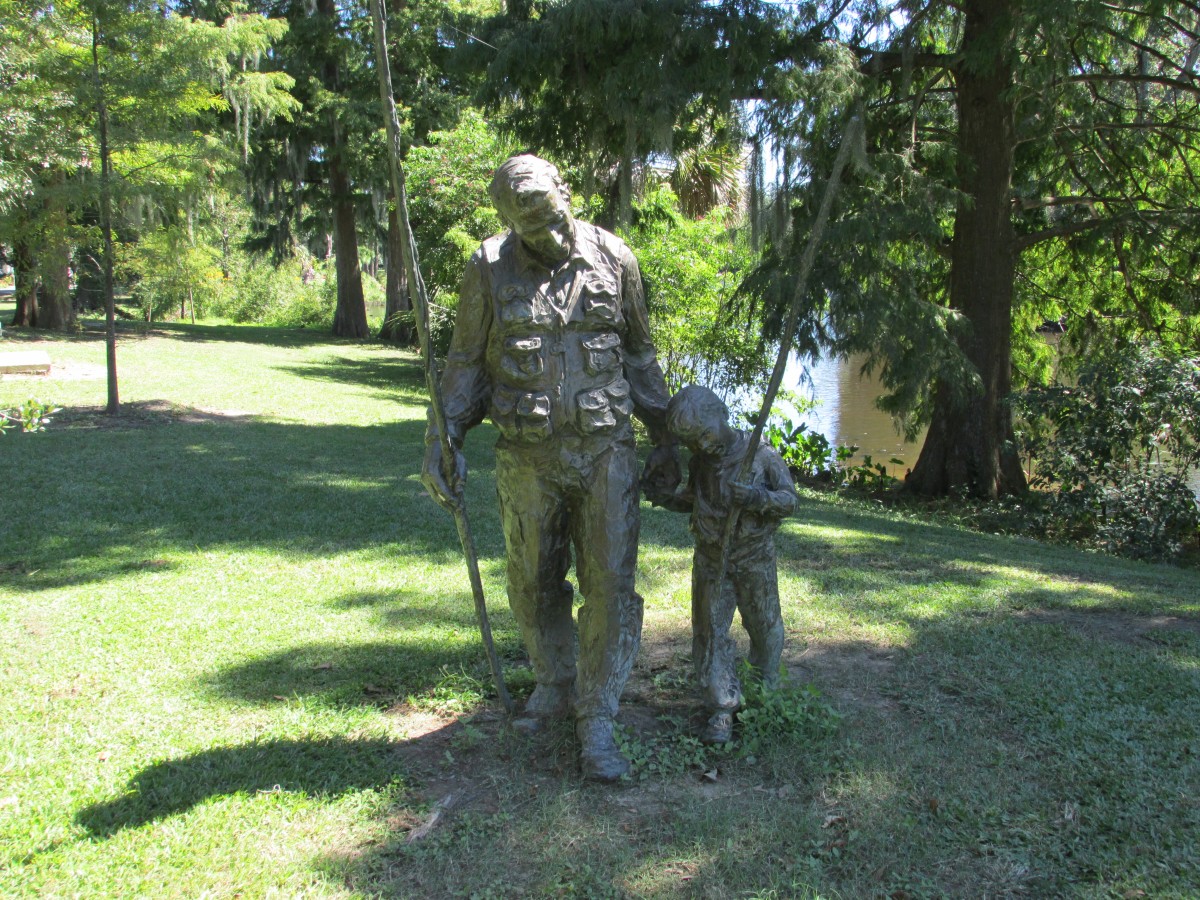 Statue of father and son fishing