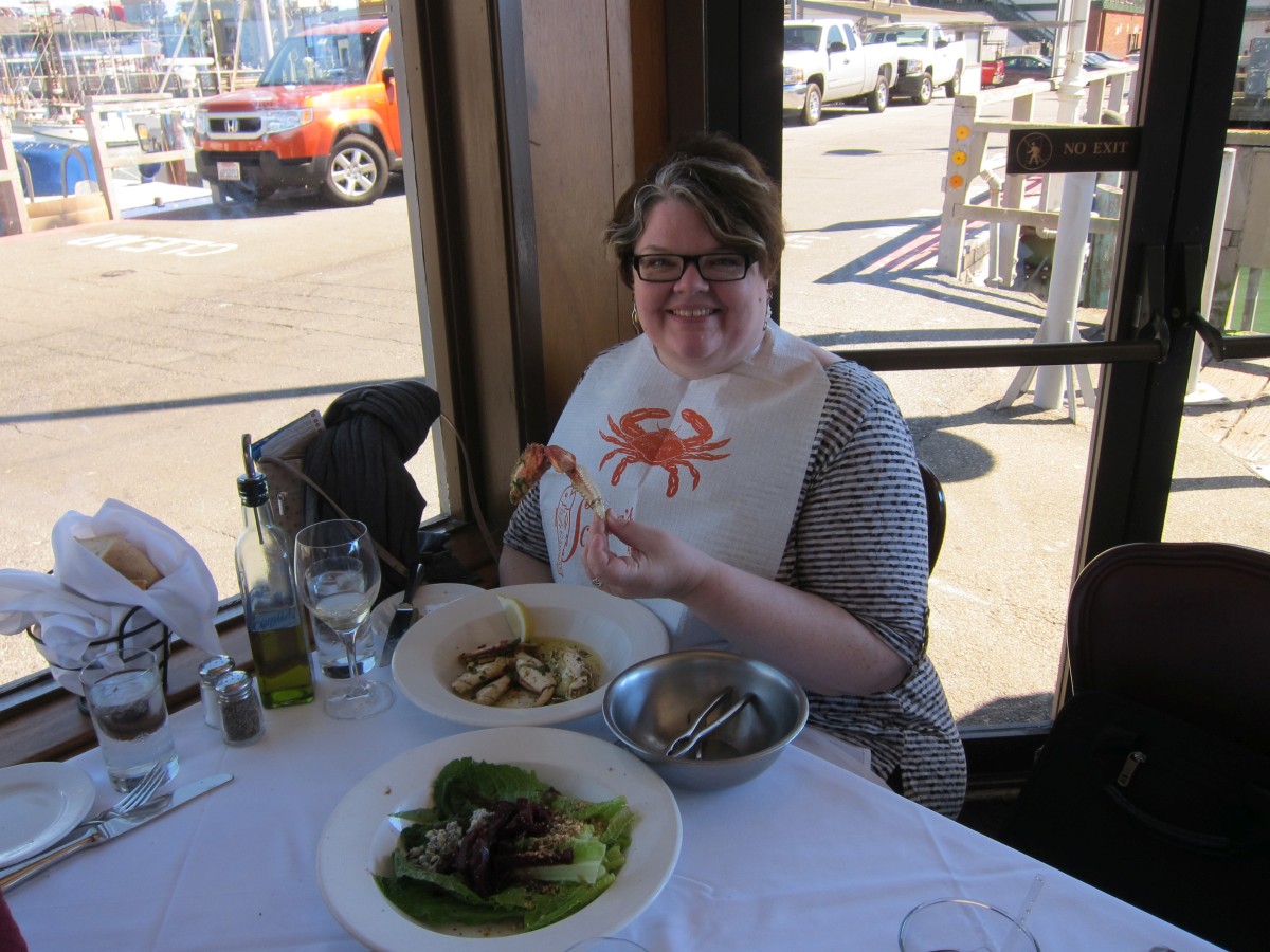 Michelle eating crab
