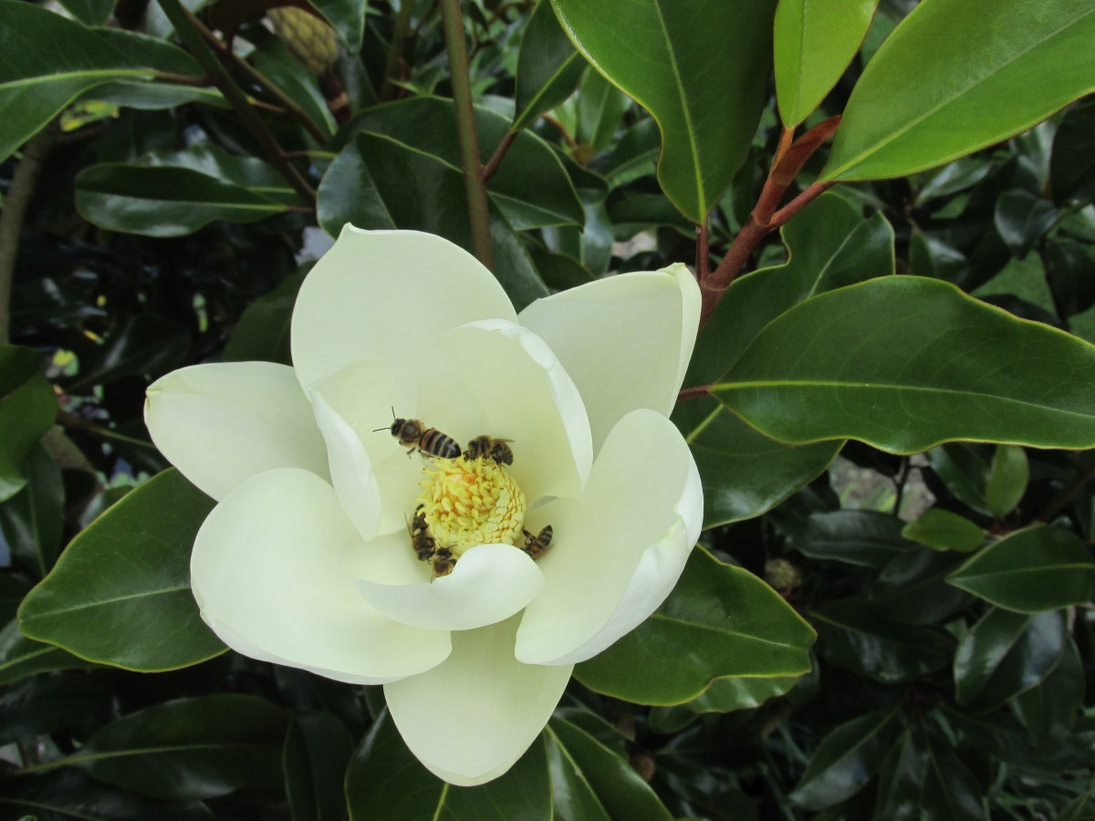 Magnolia full of bees