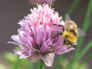 the bees love the chive flowers