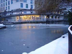 Bridge over frozen water.